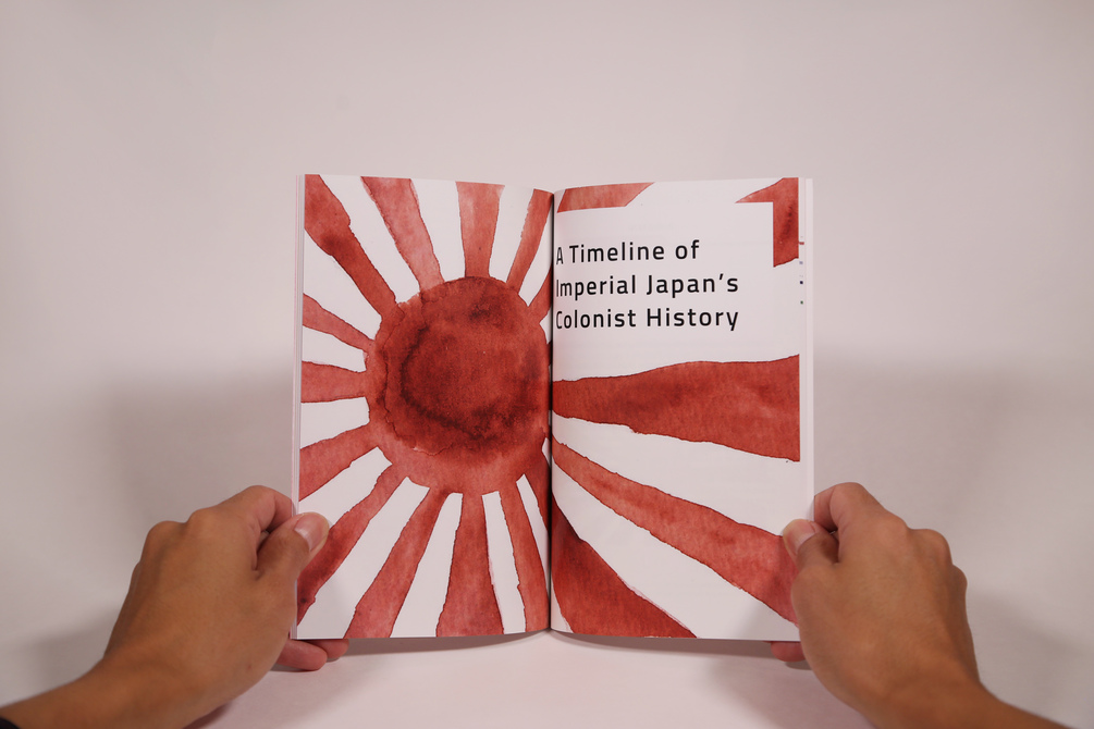 puri zine issue no. 1 “Fascist Flag” takes a view of Japan’s violent colonial past, and the efforts by some to whitewash and erase that history. The ubiquity of the Rising Sun, and its perception as a benign symbol of Japan belies an amnesia of some of humanity's most depraved acts. This forgetting is dangerous and it is part of what prevents our society from moving on from, atoning for, and ensuring that we do not repeat grave transgressions against humanity.